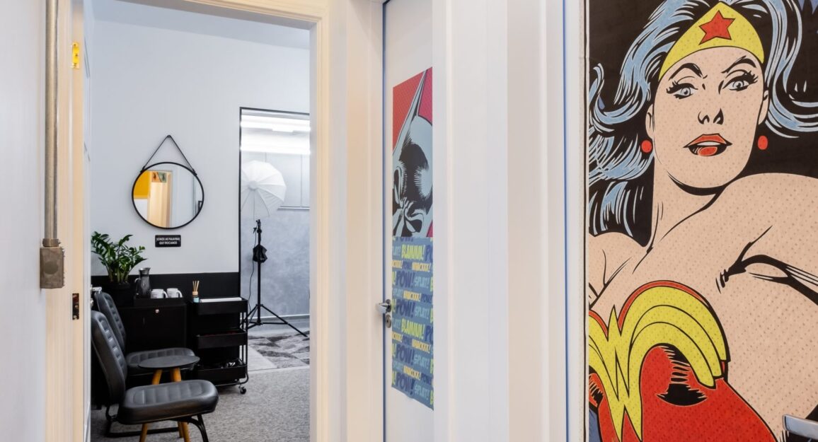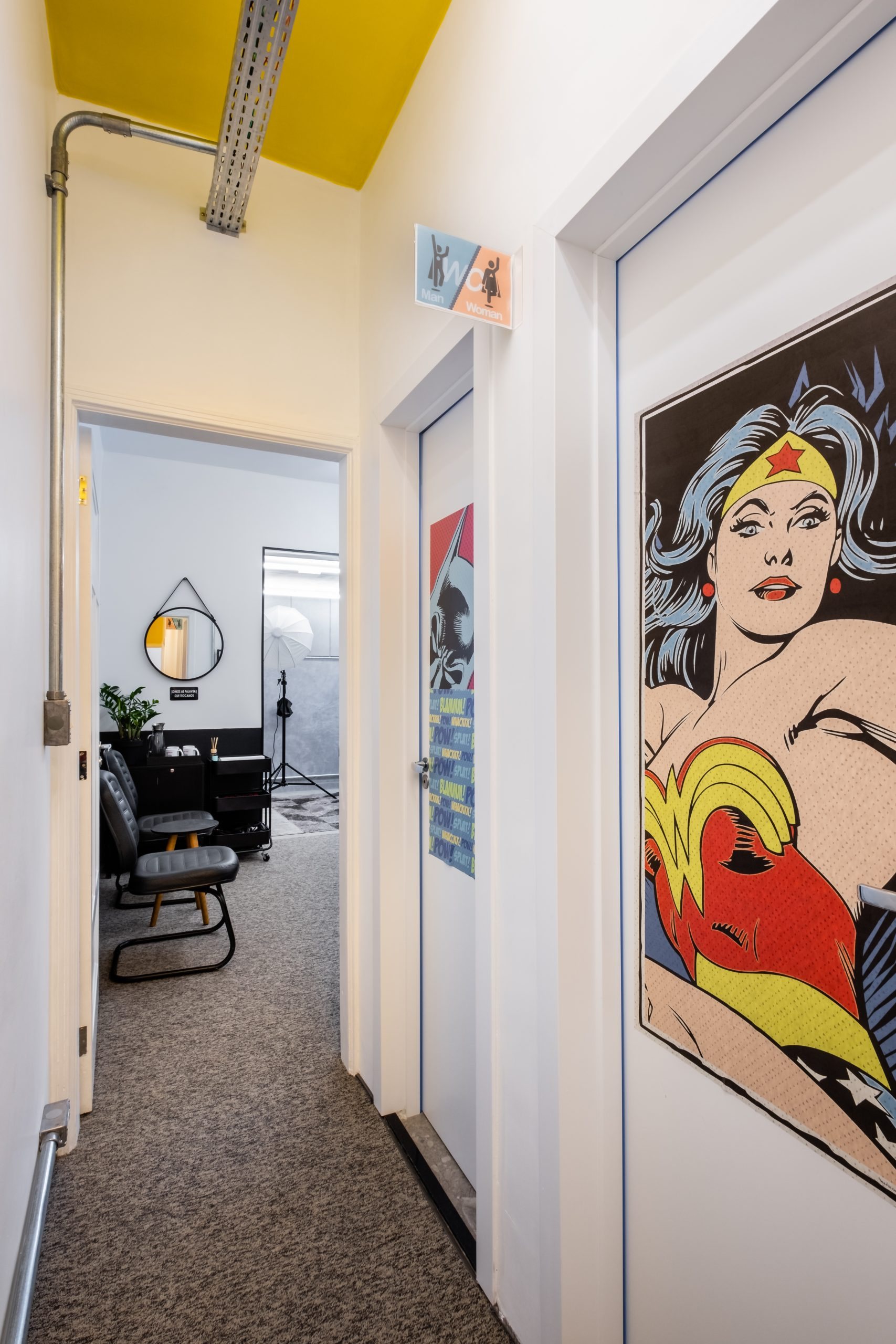 E claro que os nomes das salas acompanham nosso fanatismo nerd. São elas: Sala Capitão América, Sala Pantera Negra, Sala Guardiões da Galáxia, Sala Mulher Maravilha, Sala Wanda Vision, Sala Superman, Sala Dr. Estranho (para manipular o tempo e o espaço nos prazos dos jobs) e Sala X-Men.
